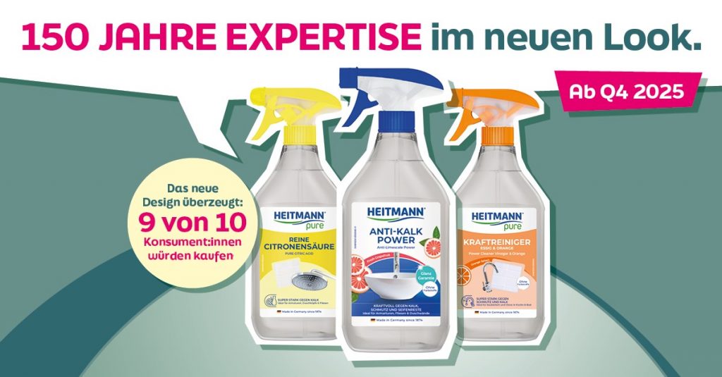 Ab Herbst 2025 erscheinen die Produkte von HEITMANN und HEITMANN pure in einem modernen, klar strukturierten Verpackungsdesign. Mit dem neuen Auftritt setzen wir unseren Weg konsequent fort: Das Design vereint Funktionalität mit starker Markenpräsenz und sorgt für einfache Orientierung im Regal.